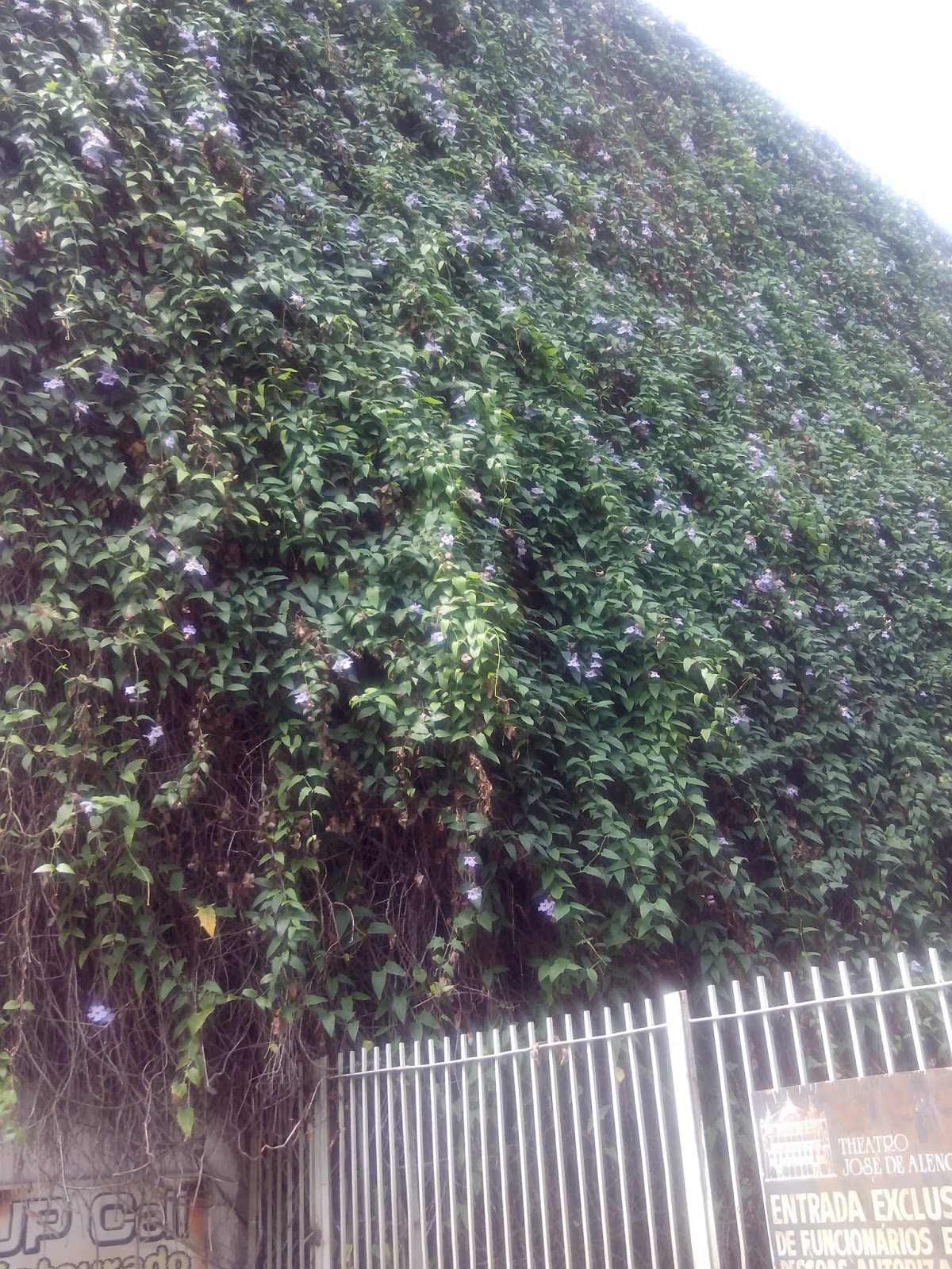 Indiferente as luzes e aplausos, a trepadeira monta sua peça, sem roteiro e sem mídia e utilizando agentes naturais, terra, água, sol e ar, mostrando ao mundo que o solo alencarino compartilha com a natureza, fazendo um expoente de beleza possa ser visto sem filas e sem ingressos prestigiando espectadores anônimos, que mesmo passando as pressas em suas rotinas diárias, possam ver um quadro vivo que ficara vivo em suas lembranças.